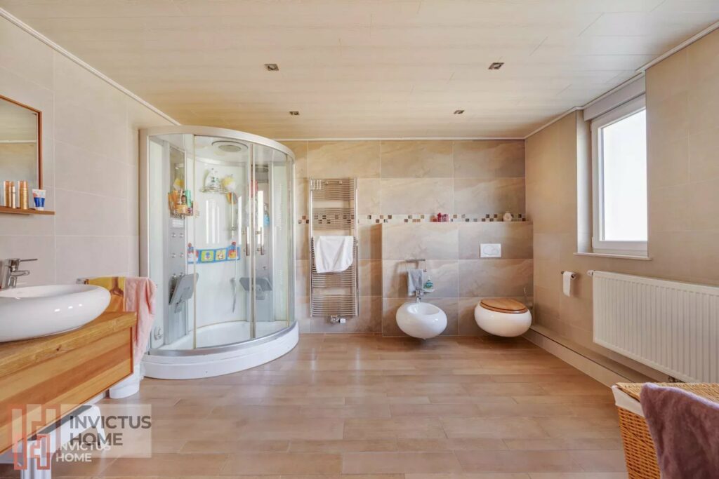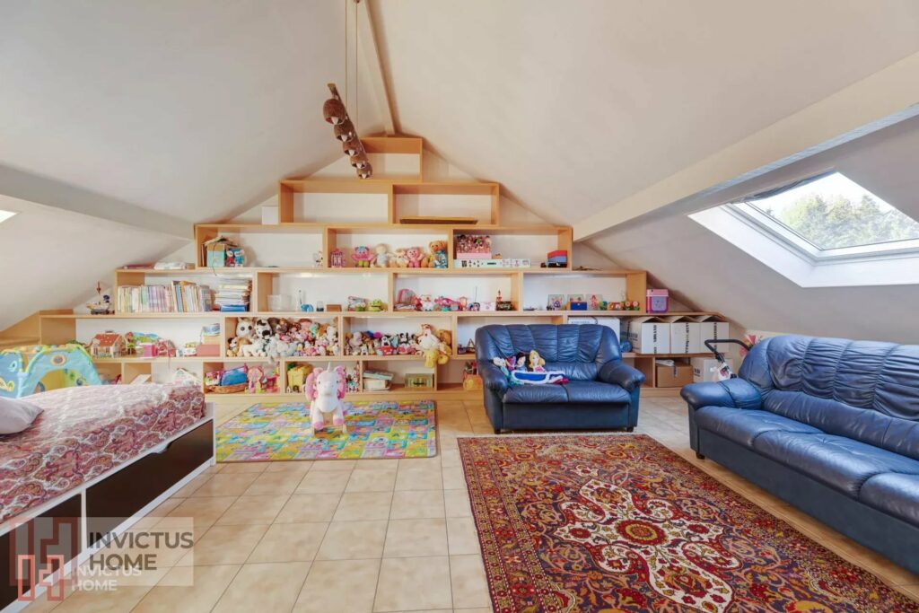 À l’étage se trouvent trois spacieuses chambres à coucher, et une très grande et lumineuse salle de bains avec jacuzzi et douche italienne, aérée par trois fenêtres, ainsi qu'une belle chambre parentale. Les combles aménagées proposent un open space pouvant servir de salle de jeux ou pièce de loisir.
