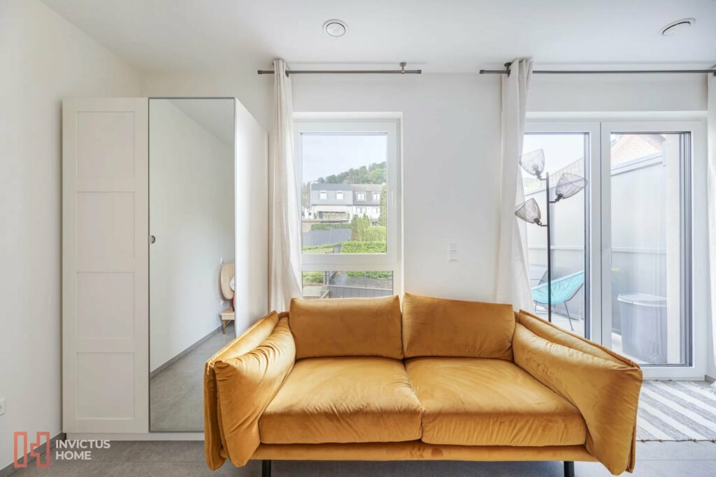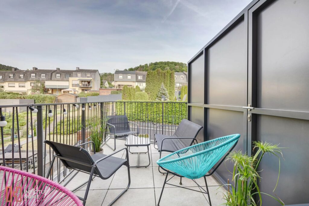 Chouette petit appartement 1 chambre ou grand studio meublé, presque neuf, et avec balcon, à louer dans une petite copropriété à Bofferdange.