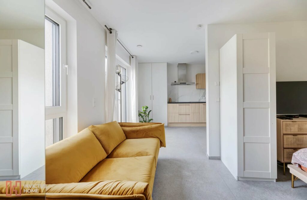 - einem modernen Wohnbereich mit offener Küche