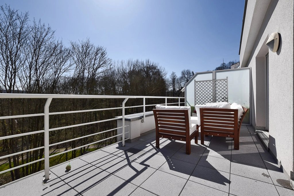 - access to the spacious terr...ace through large French windows from the living room and from the bedroom