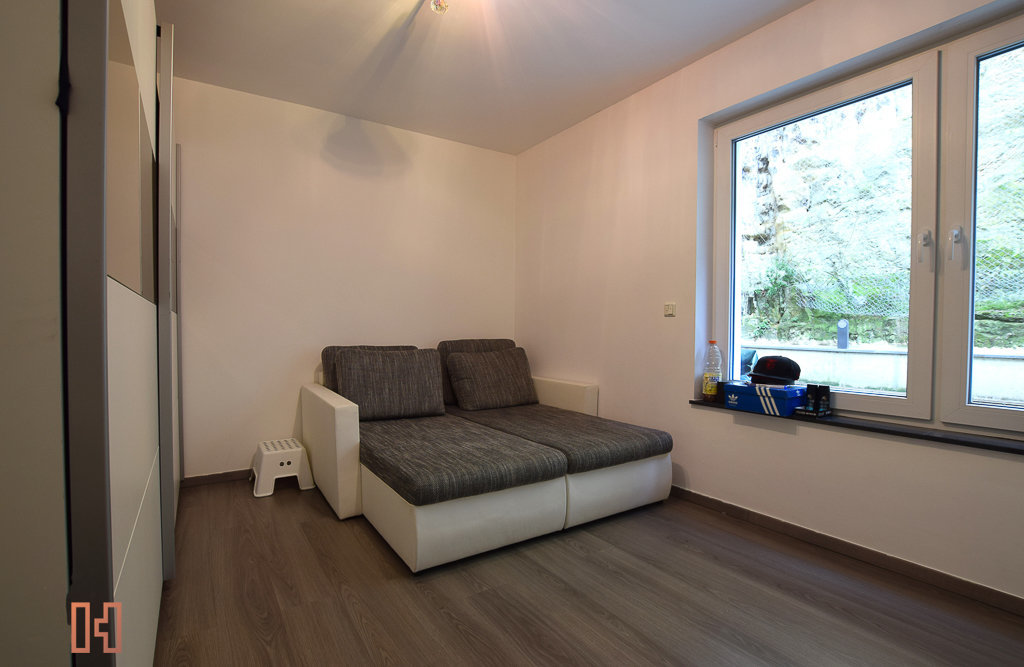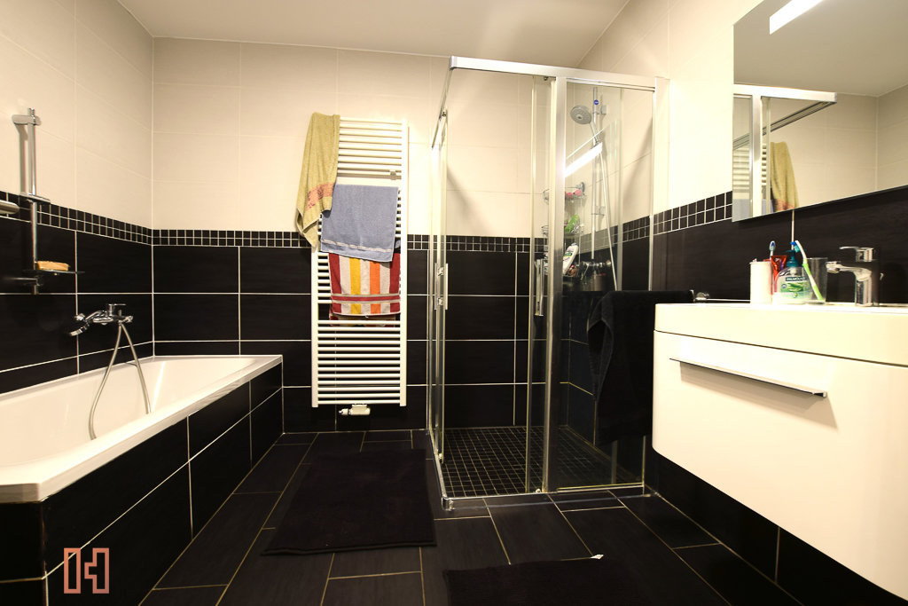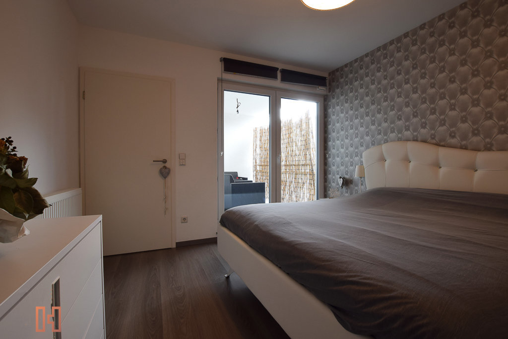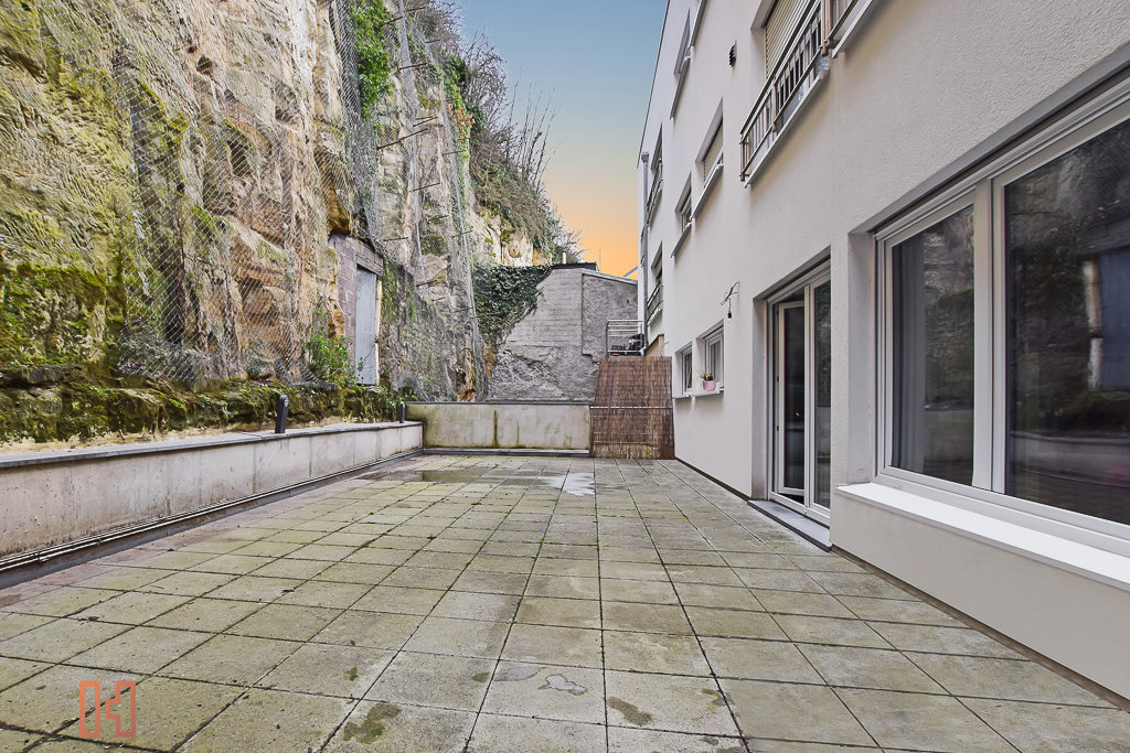 The apartment consists of two bedrooms, one of which has a balcony, a bathroom with shower and bathtub, a second separate toilet and a living area with an open kitchen (Bosch equipment) giving access to a large terrace of 60m².