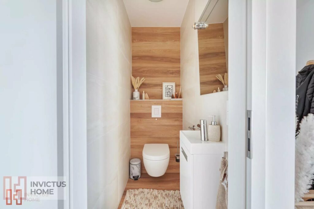 L'appartement dispose d'un petit débarras, qui héberge aussi la ventilation mécanique. Un wc d'invités est également disponible.