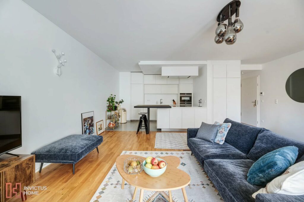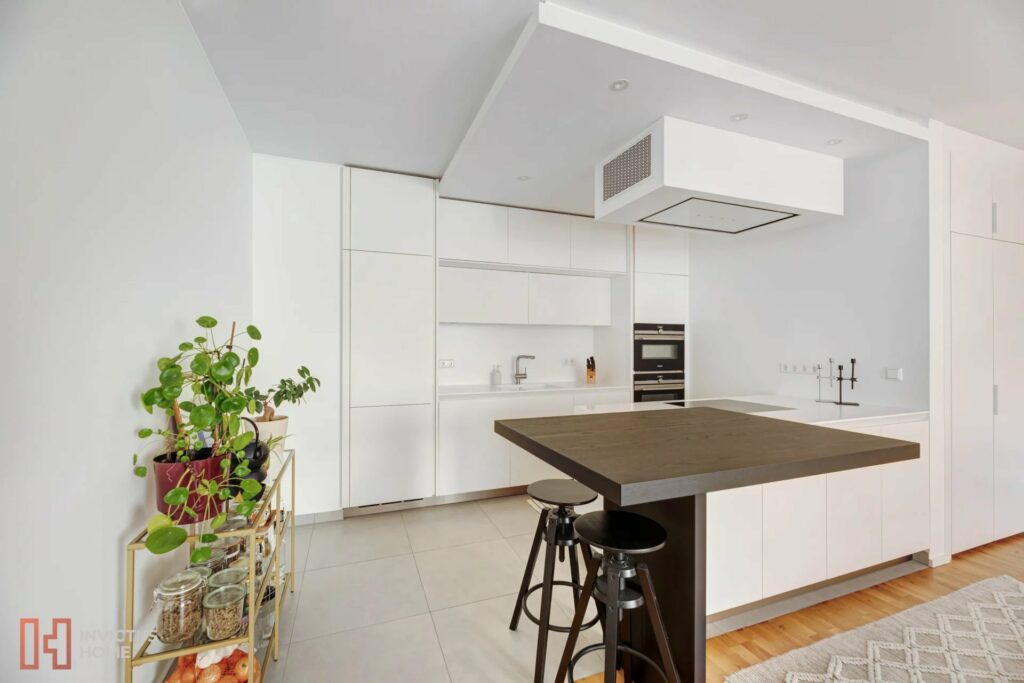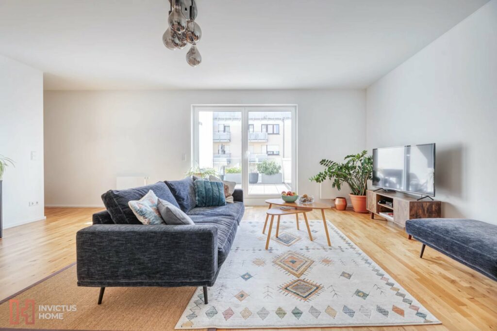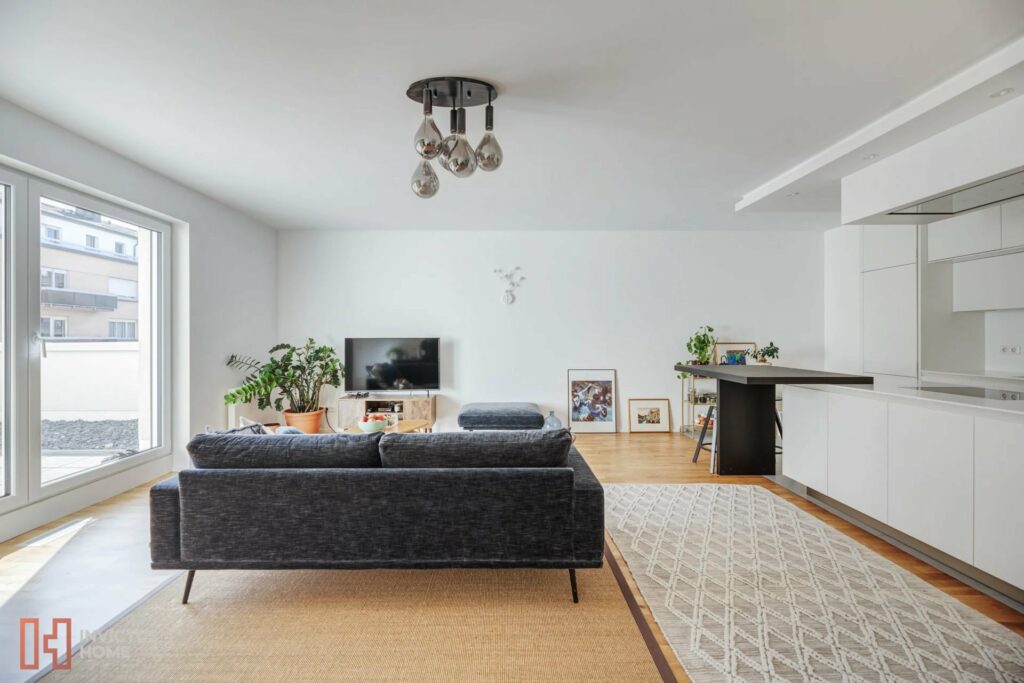 Situé au 1er étage de l'immeuble Mila, cet appartement d'environ 85 m2 propose un lumineux et chaleureux séjour - salon avec belle et moderne cuisine entièrement équipée et des rangements joliment encastrés, donnant sur un comfortable balcon/ loggia.