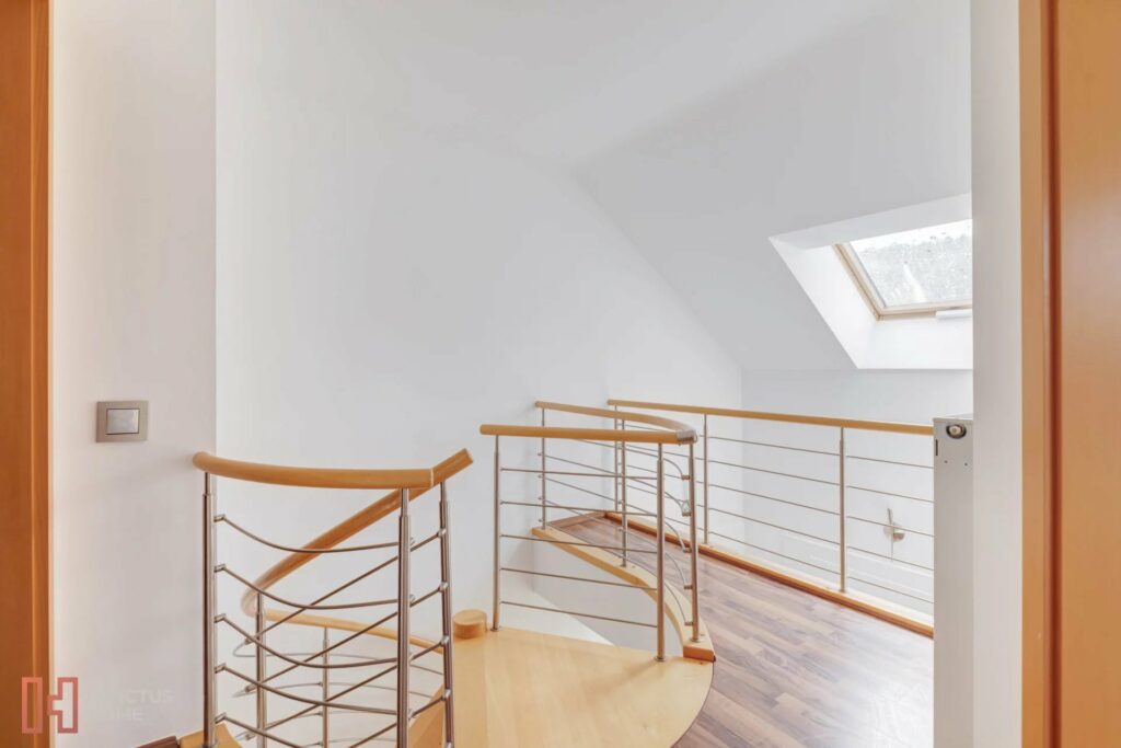 * un escalier en colimaçon mène à l’étage supérieur, avec deux chambres à coucher d'environ 13 mÂ...²